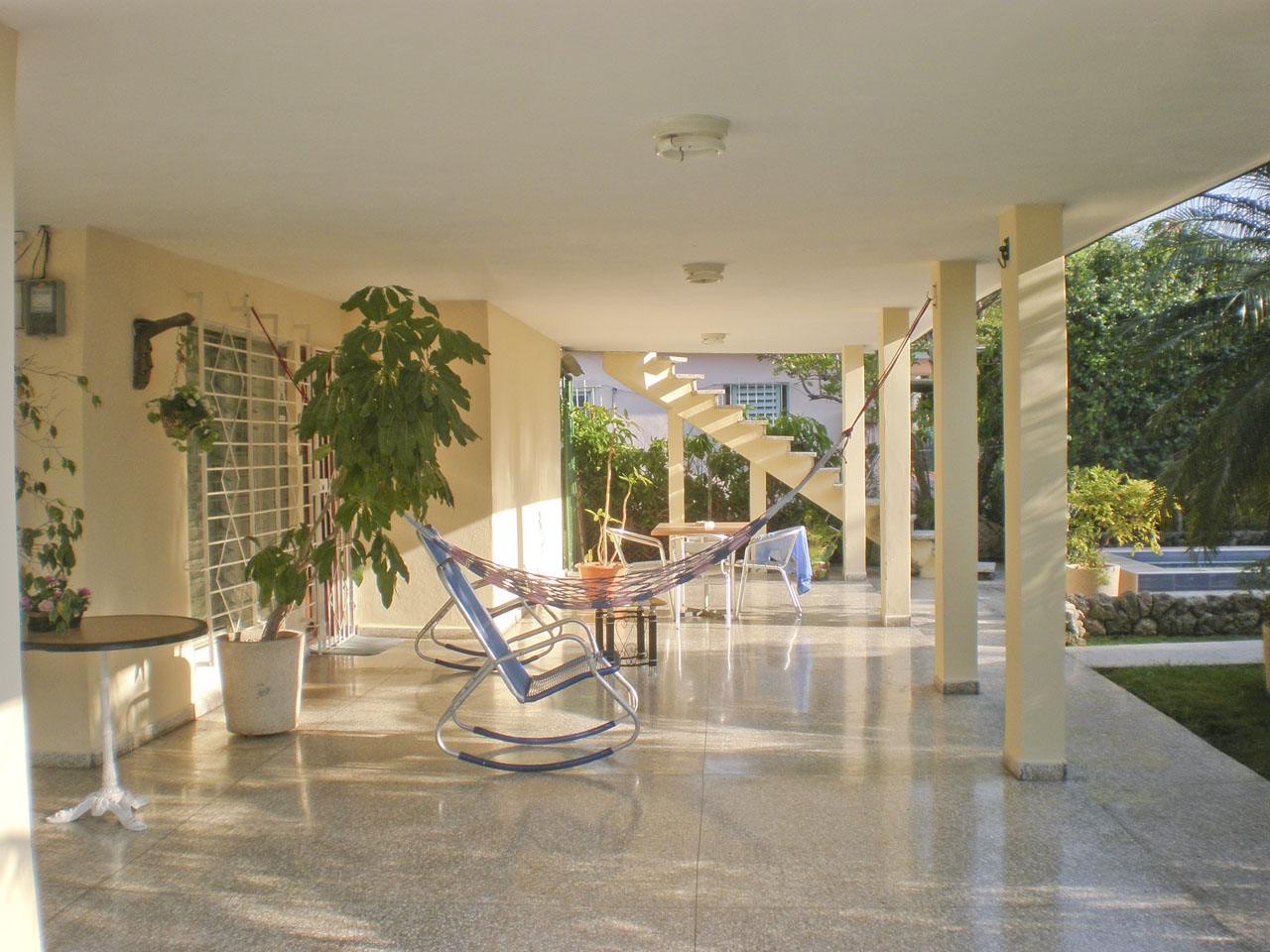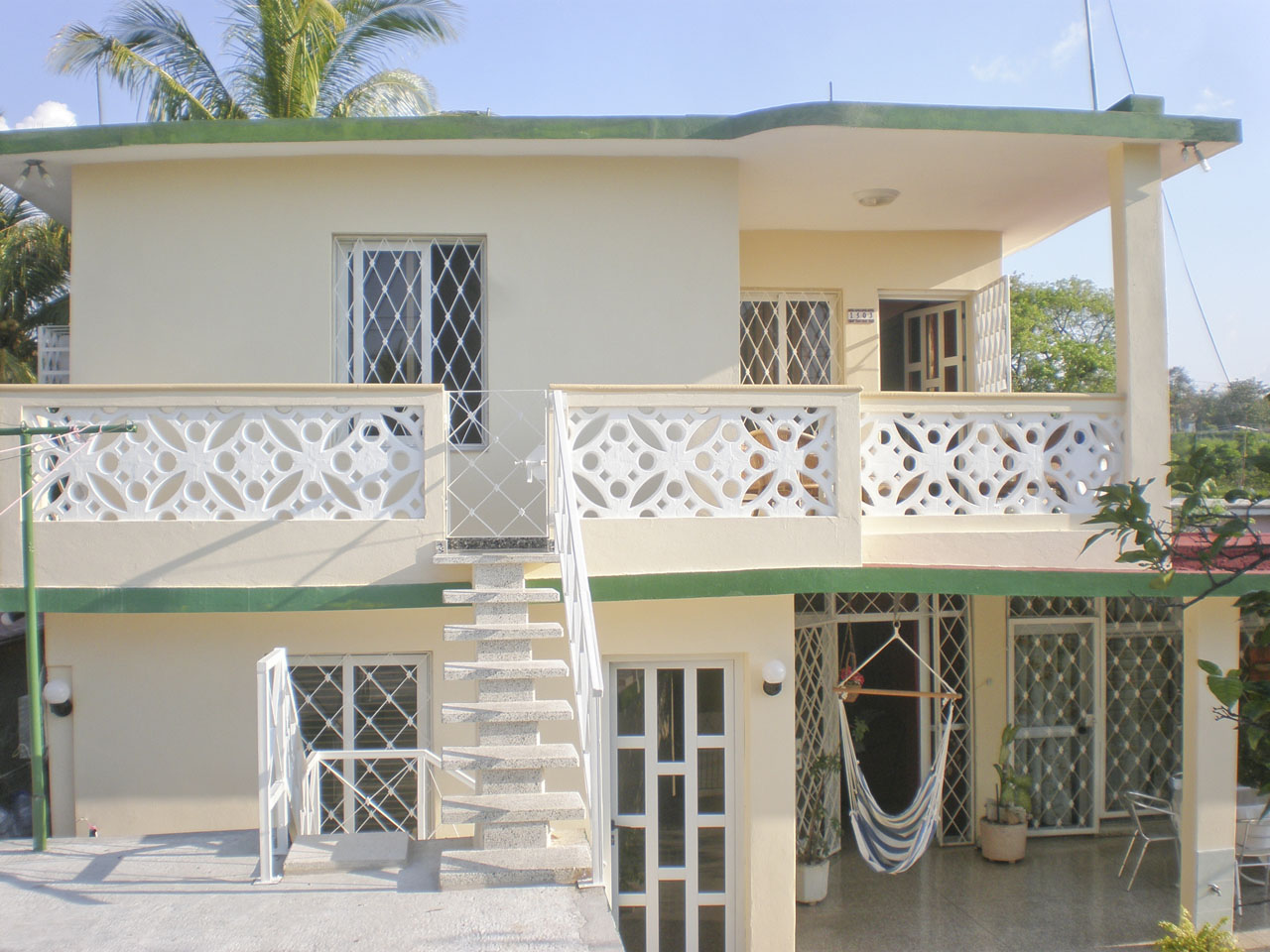 Al primo piano un appartamento completo e indipendente con due stanze, due bagni, una sala con cucina e una enorme terrazza. La casa dispone di un porticato molto ampio dove si può mangiare e oziare ; inoltre c’è una piccola piscina per rinfrescarsi dalla calura dei caraibi. Si può parcheggiare la macchina all’interno della recinzione della casa.